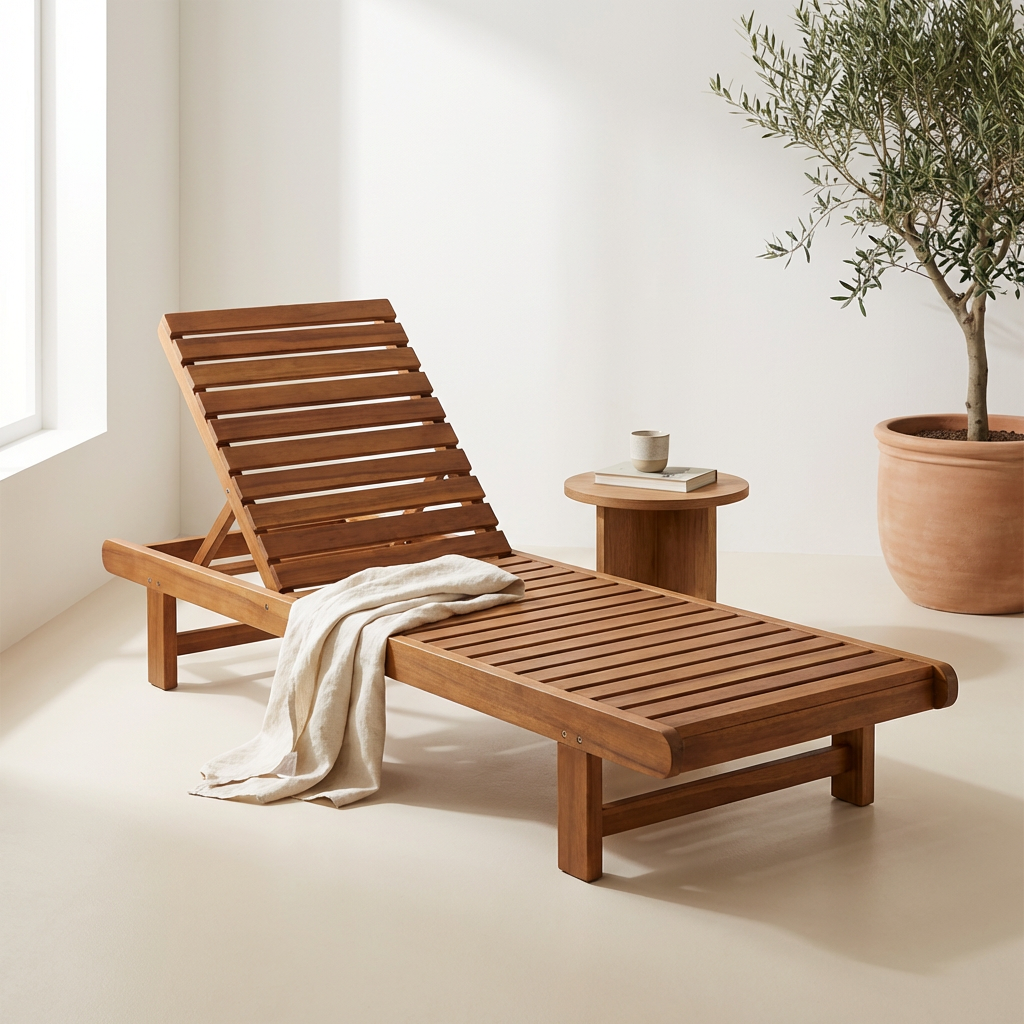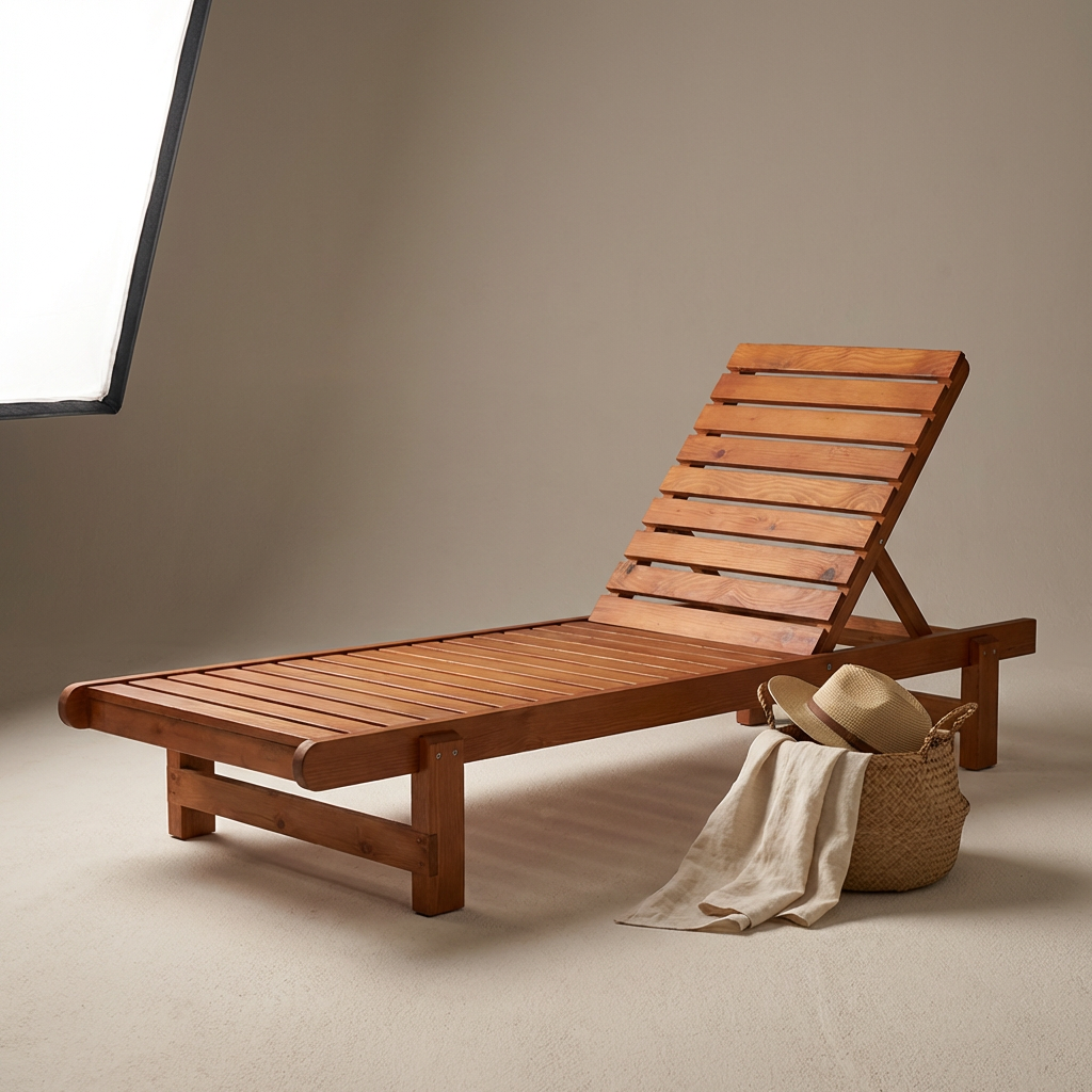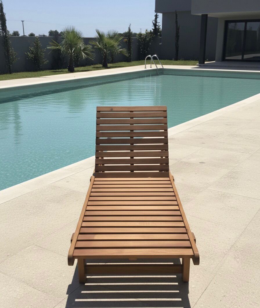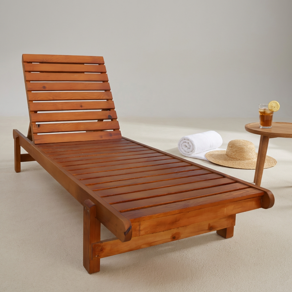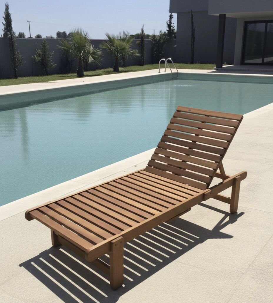 Doğal ahşap yapısı ve ayarlanabilir sırt tasarımıyla dış mekân konforunu estetikle buluşturan şezlong modeli.